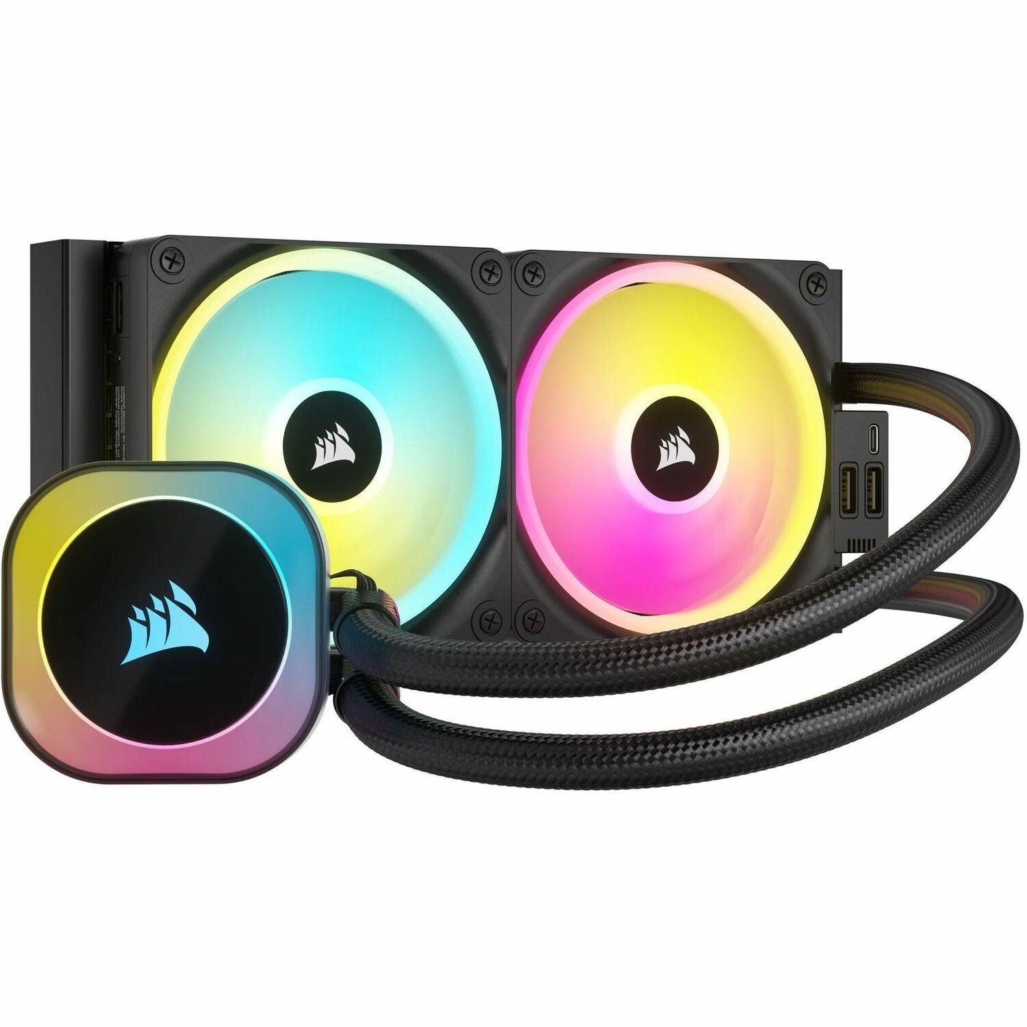 Adjust fan and pump speeds, control and synchronize RGB lighting, and monitor CPU and coolant temperatures in iCUE.