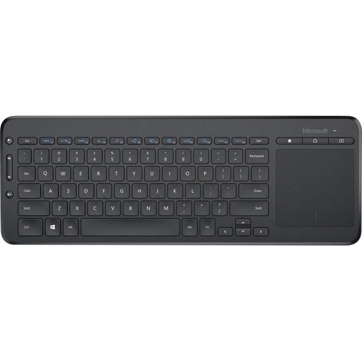 The All-in-One Media Keyboard is the perfect device for your living room or home office. It has a full-size keyset and an integrated multi-touch trackpad - type, swipe, drag, zoom, and click with ease. It has customizable media hotkeys that put the web and your favorite music, photos, and movies at your fingertips. The keyboard also has a durable design, so there's no need to sweat the bumps, drops, or spills of everyday life. The All-in-One Media Keyboard is all you need for comfortable typing and effortless navigation.